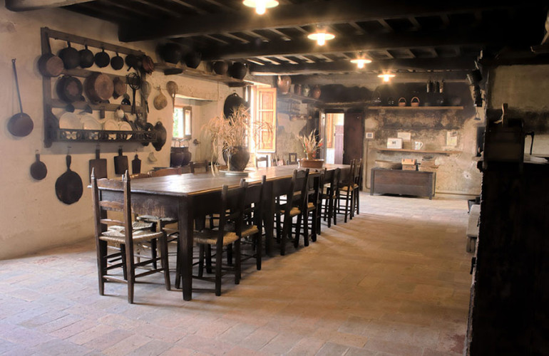 Sono stati rimesse al loro posto tutte le suppellettili, così come le attrezzature per il lavoro legate alla vita quotidiana, che era fatto di agricoltura ma anche allevamento di animali: «A piano terra si trova la bottega del fabbro, nelle stalle ci sono tutti gli strumenti per la cura degli animali, nel locale adibito al frantoio ci sono le anfore per l'olio, gli orci, una macina di pietra e un grande torchio del Settecento. Al piano superiore si possono visitare la grande cucina con il focolare in pietra e i piccoli strumenti da lavoro di tutti i giorni, e la camera da letto, mentre nella grande soffitta sono stati raccolti tutti gli attrezzi per la lavorazione dei cereali oltre ai telai per la tessitura».